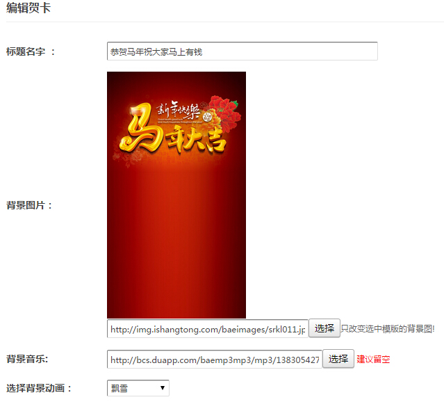 第一步:在左侧菜单栏找到贺卡-->点击进入新增界面